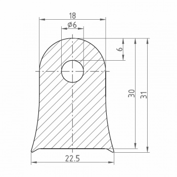 Halfrond rubber profiel hol HxB: 30x18 gat 6 mm