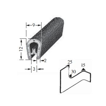 Kantafwerkprofiel - plaatdikte: 1-3 mm BxH: 9x12 mm zwart