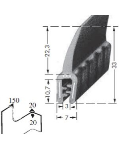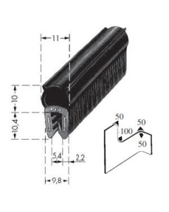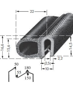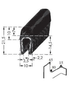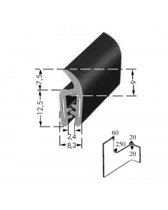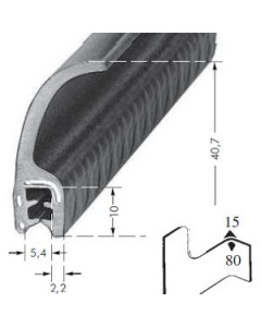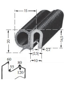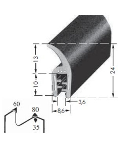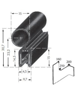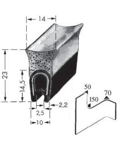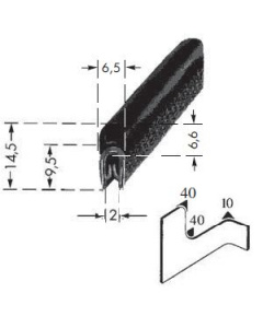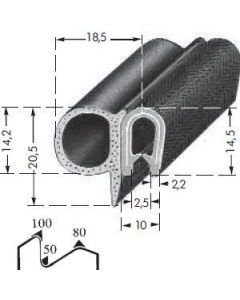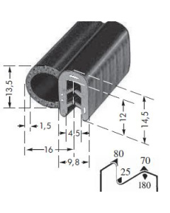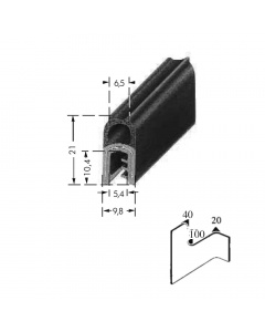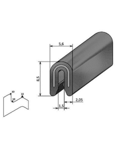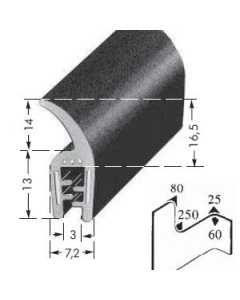 c = de minimale buigingsradius aan de buitenzijde van een bocht. Deze maat is vooral van belang bij gecombineerde profielen met aangehechte sponsrubber- of volrubberprofielen.