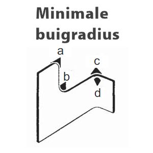 b = de minimale buigingsradius, bijvoorbeeld in een gat of in de binnenbocht van een plaat.
