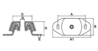 Deze rubber trillingsdempers worden geleverd in de hardheden 40, 55 en 72 Shore A. Standaard wordt staal 37 gebruikt, maar de dempers kunnen ook in RVS A2 en A4 worden geleverd.