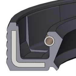 Oliekeerring (simmerring) in de standaarduitvoering volgens DIN 3760 met een elastomeerbuitenmantel, een metalen verstevigingsring en een door een veer ondersteunde dichtlip. De veer is gemaakt van ongelegeerd staal volgens DIN EN 10270-1 en de verstevigingsring van ongelegeerd staal volgens DIN EN 10139.