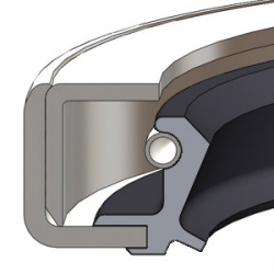 Oliekeerring (simmerring) in de standaarduitvoering volgens DIN 3760 met een elastomeerbuitenmantel, een metalen verstevigingsring en een door een veer ondersteunde dichtlip.