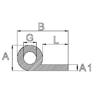 Rubber kraalprofiel breed 50 mm x kraaldiam, 20 mmB: 50 A: 20 A1: 7 G: 7 L: 30€ 12,25 € 10,12 Vanaf € 7,34