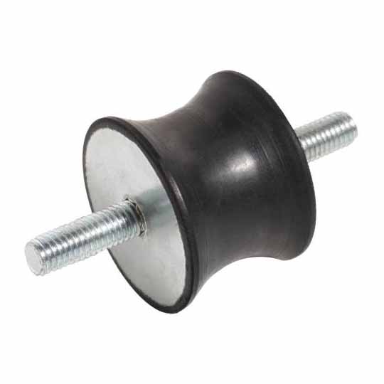Rubber tailledempers met aan beide zijden uitwendig draadeind. Tailledempers of getailleerde dempers zijn trillingsdempers met insnoering voor flexibele toepassingen. Ze zijn slechts in beperkte mate geschikt voor ophanging.