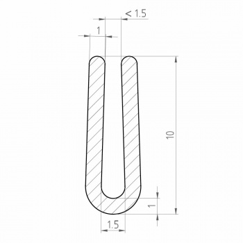 Silicone U-profiel inw, 1.5 mm BxH: 3.5x10 mm